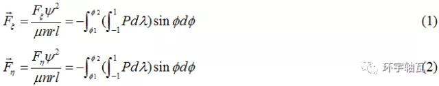 對于有限寬軸承,水平、垂直方向油膜合力如圖3所示,其無量綱值為: