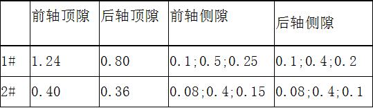 空載慢轉(zhuǎn)1小時,再進(jìn)行空載正常運行2小時,試車過程注意軸瓦溫度變化,中控與現(xiàn)場保持密切聯(lián)系,軸瓦持續(xù)溫升超65℃及時停機檢查,或用軸流風(fēng)扇冷卻,試車4小時無異常后對電機進(jìn)行校正聯(lián)軸器。經(jīng)研刮后兩臺電機投入使用后正常,施工結(jié)果記錄見下表: